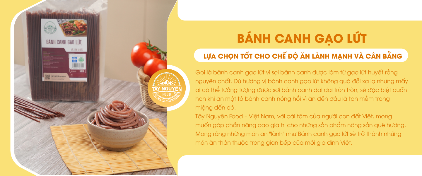 Tây Nguyên Food – Việt Nam, với cái tâm của người con đất Việt, mong muốn góp phần nâng cao giá trị cho những sản phẩm nông sản quê hương. Mong rằng những món ăn "lành" như Bánh canh gạo lứt sẽ trở thành những món ăn thân thuộc trong gian bếp của mỗi gia đình Việt.