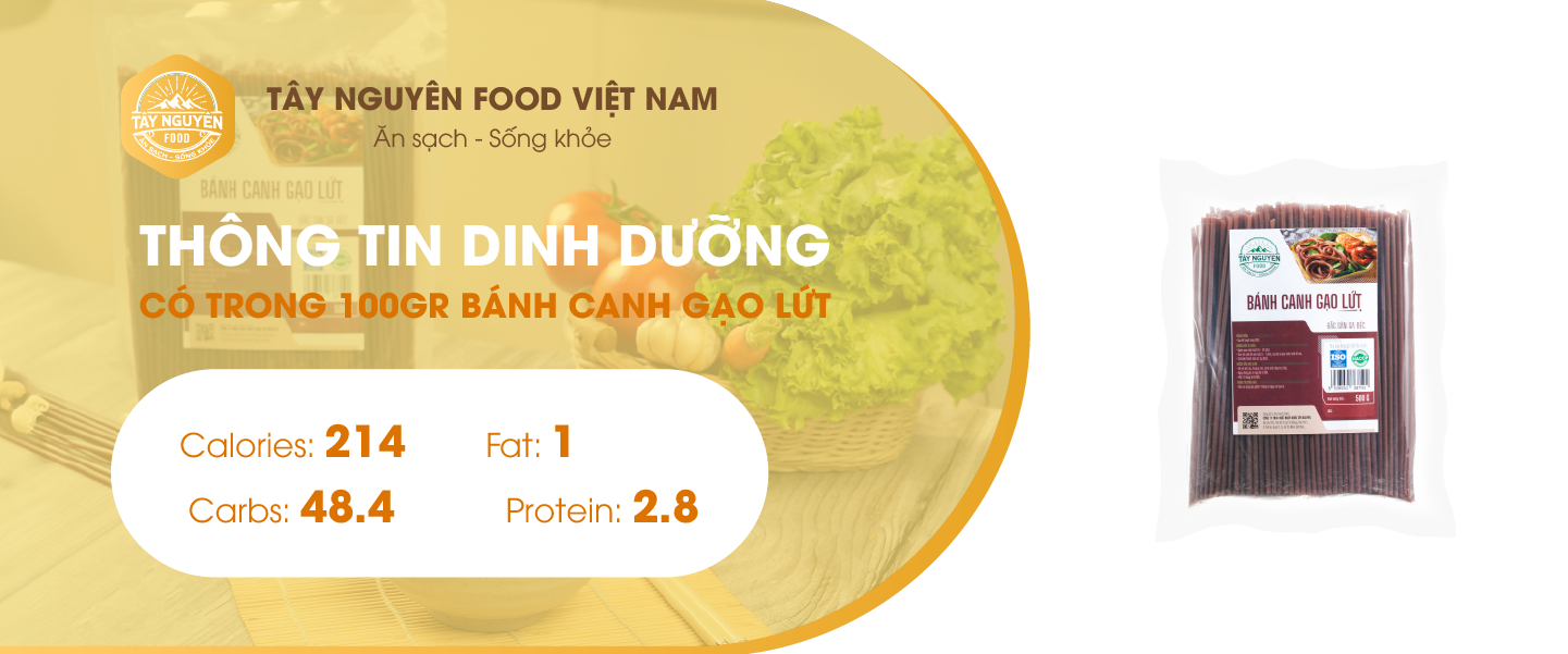 THÔNG TIN DINH DƯỠNG CÓ TRONG 100 GRAM BÁNH CANH GẠO LỨT NHÀ TÂY NGUYÊN FOOD - VIỆT NAM