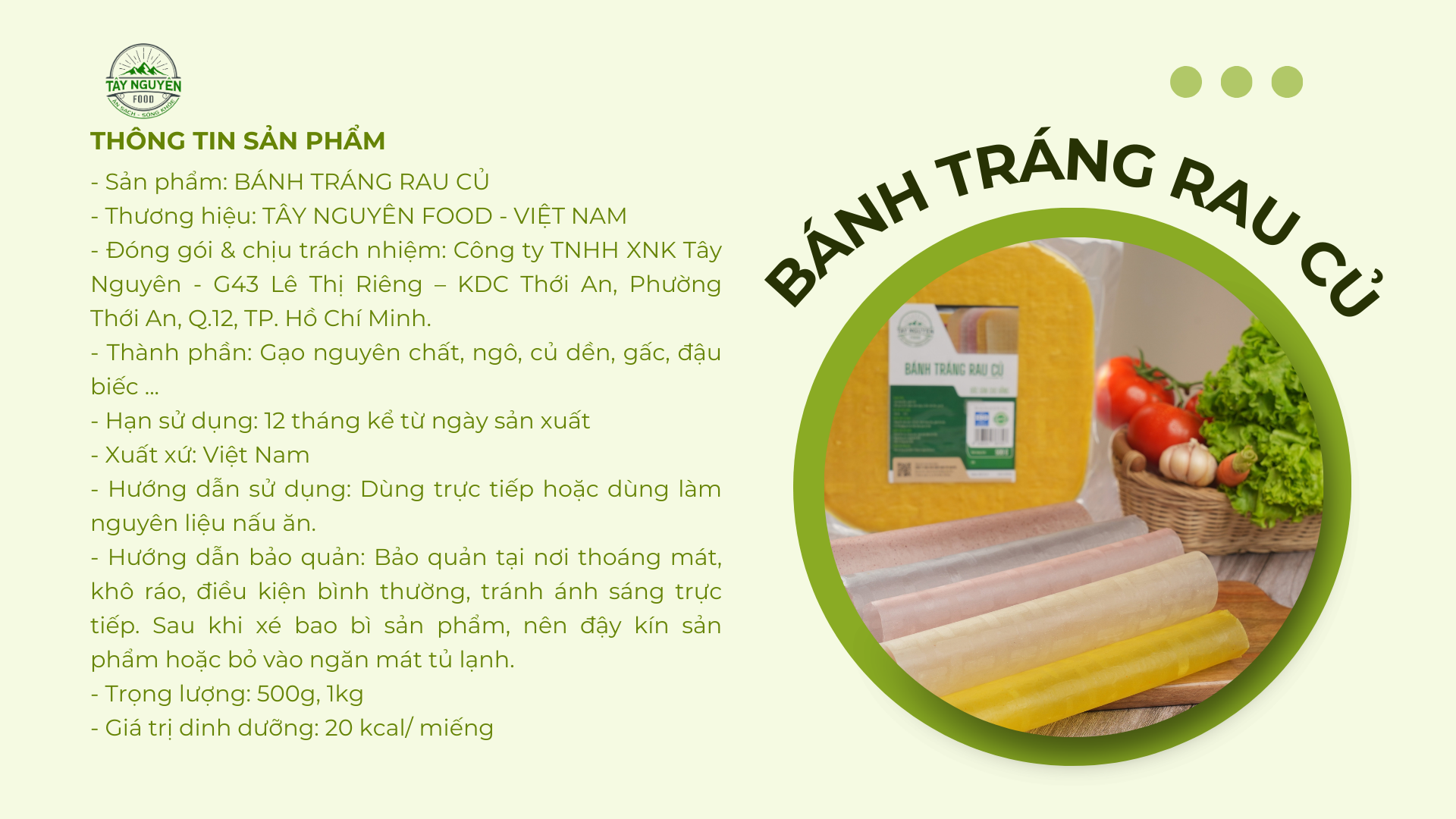 - Sản phẩm: BÁNH TRÁNG RAU CỦ