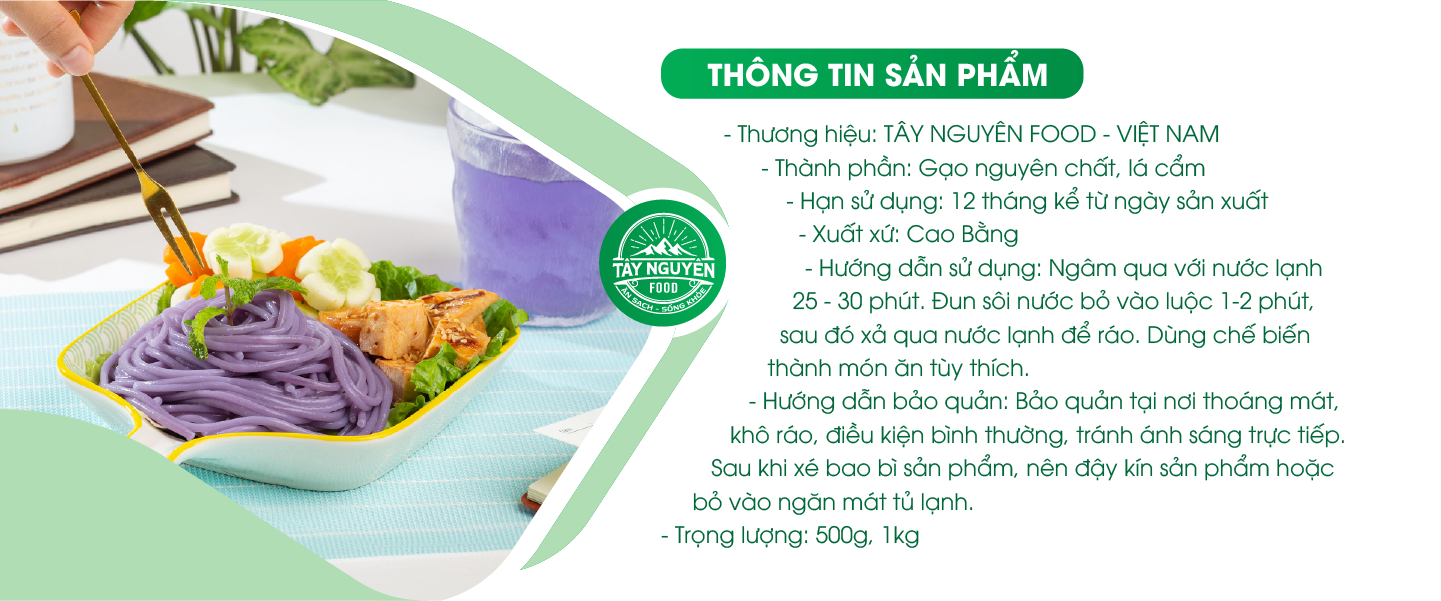 THÔNG TIN DINH DƯỠNG CÓ TRONG 100GR BÚN CẨM CAO BẰNG CỦA TÂY NGUYÊN FOOD - VIỆT NAM