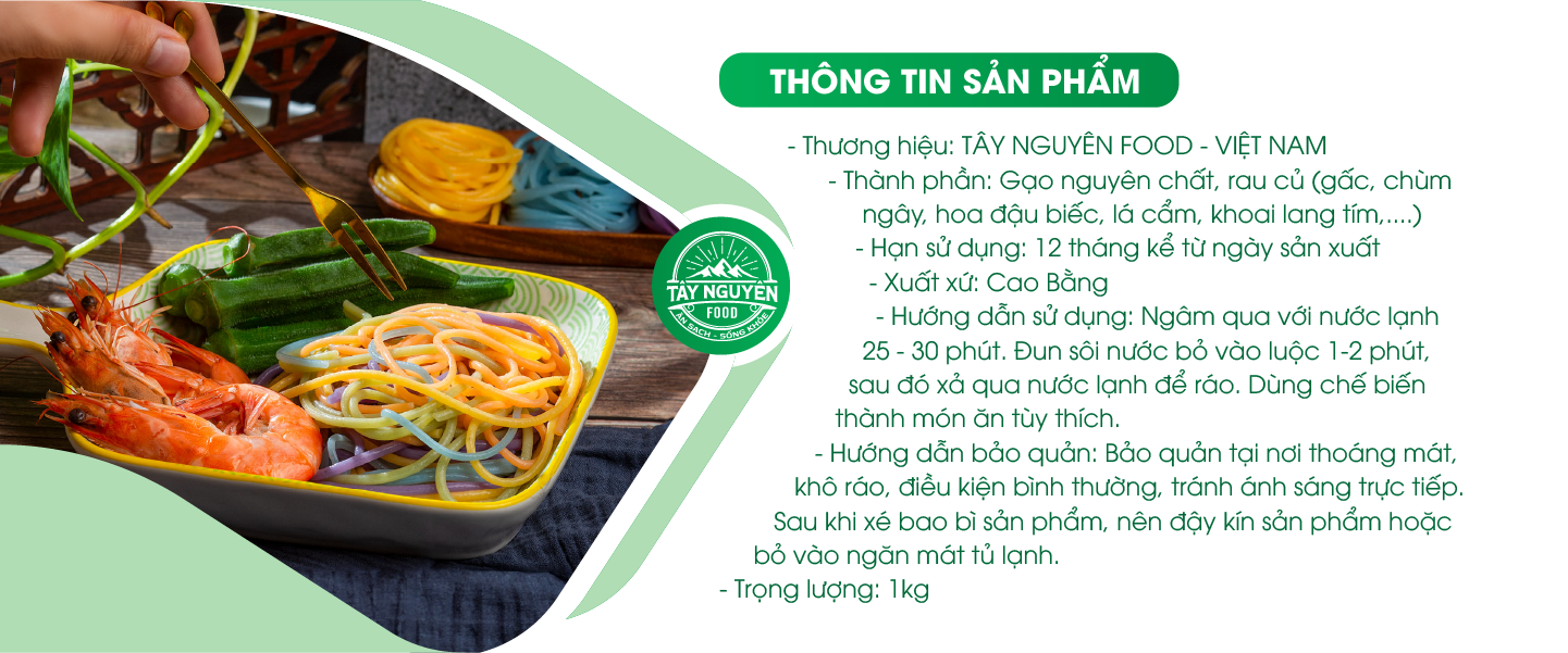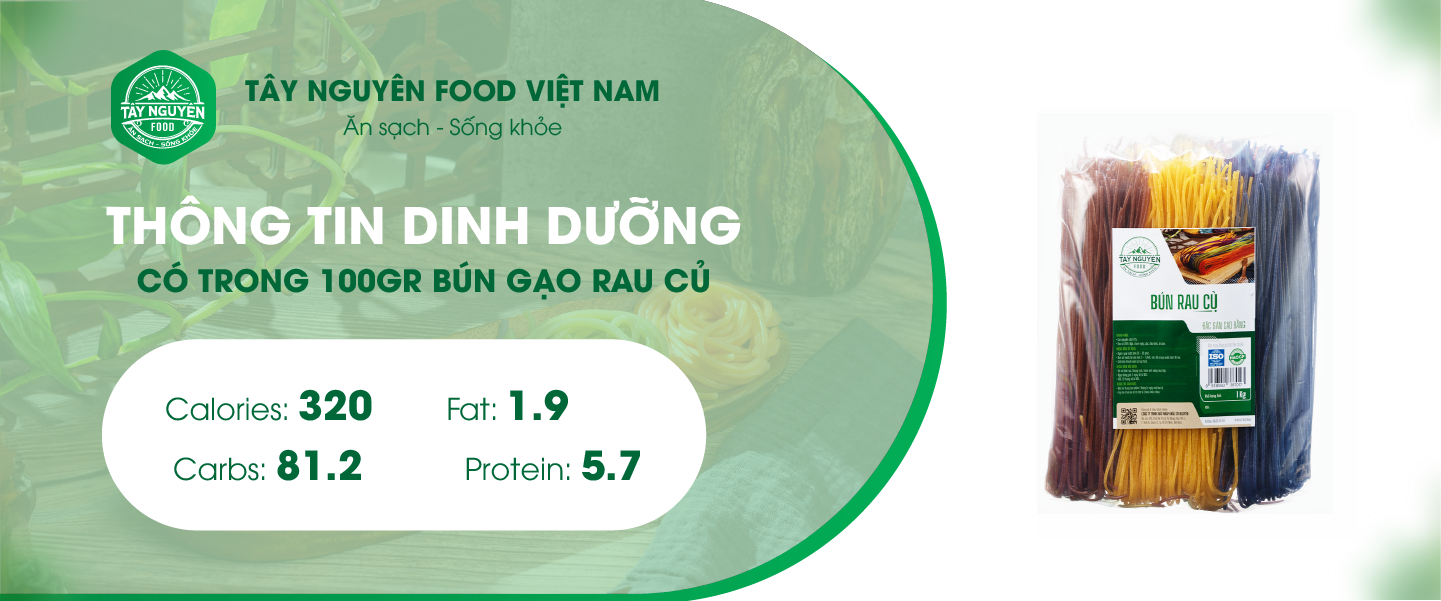 THÔNG TIN DINH DƯỠNG CÓ TRONG 100GR BÚN GẠO RAU CỦ CỦA TÂY NGUYÊN FOOD - VIỆT NAM