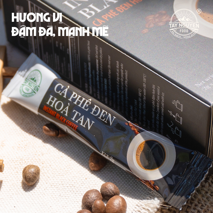 Cà phê đen hòa tan Tây Nguyên Food - Việt Nam được làm từ những hạt cà phê tuyển chọn kỹ lưỡng, mang đến hương vị cà phê đích thực của núi rừng Tây Nguyên với vị đắng nhẹ, đắng mà hậu ngọt, hương thơm nồng nàn của hạt cà phê nguyên chất. Hãy thưởng thức cà phê đen hòa tan của Tây Nguyên Food - Việt Nam để cảm nhận trọn vẹn hương vị cà phê của núi rừng Tây Nguyên như một niềm tự hào về đất nước và con người Việt Nam.