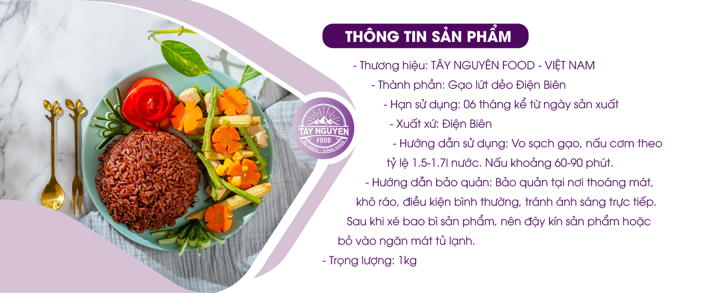 - Thành phần: Gạo lứt dẻo Điện Biên