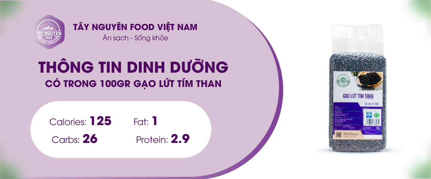 THÔNG TIN DINH DƯỠNG CÓ TRONG 100 GRAM GẠO LỨT TÍM THAN SÓC TRĂNG CỦA TÂY NGUYÊN FOOD - VIỆT NAM