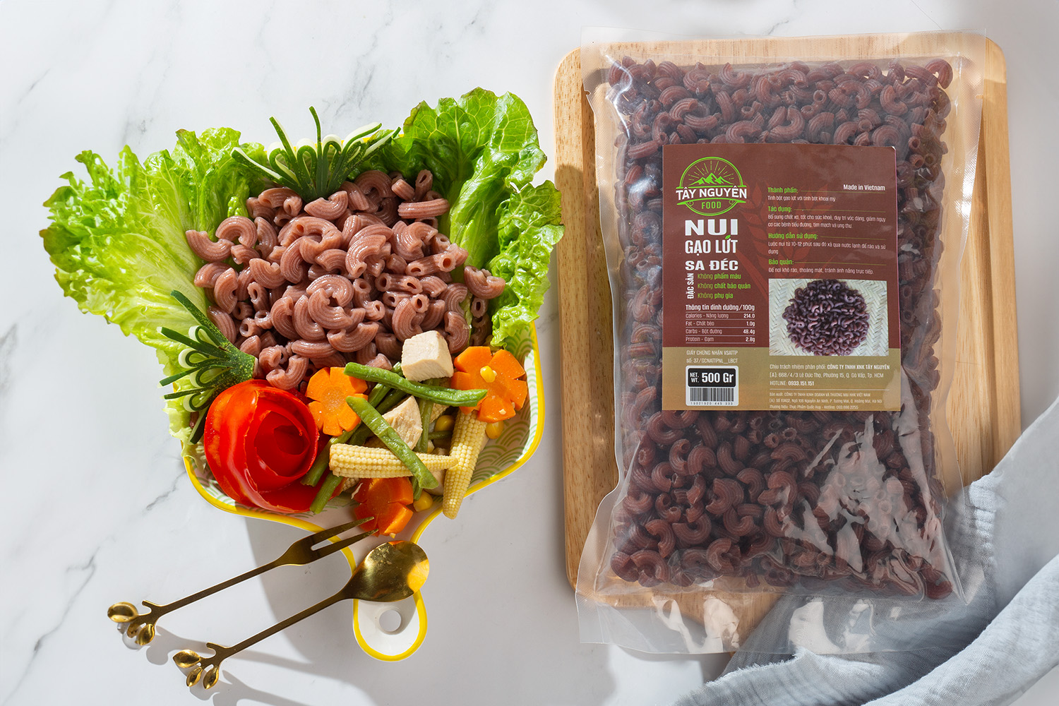 Nui ống gạo lứt nhà Tây Nguyên Food - Việt Nam được làm 100% từ gạo lứt nguyên chất, vừa dễ chế biến vừa ngon không khác gì nui bình thường. Hơn nữa, trong nui gạo lứt chứa một lượng lớn tinh bột, protein, canxi, sắt, chất xơ,...cùng nhiều loại vitamin nên một hàm lượng chất dinh dưỡng vượt trội so với những loại nui khác trên thị trường.