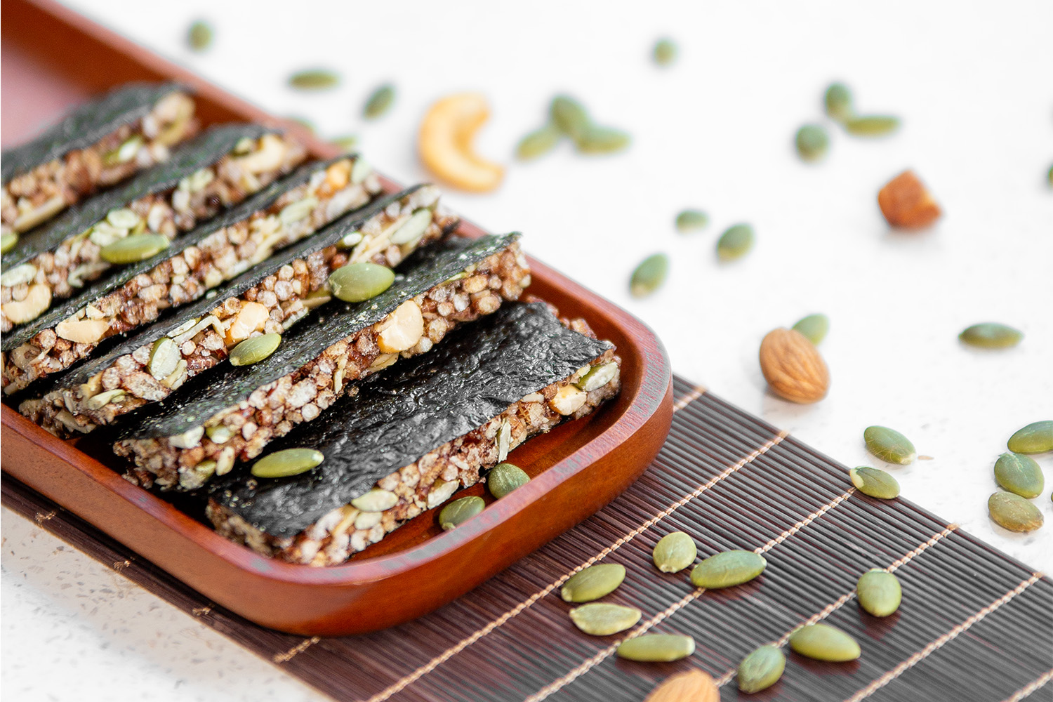 Gạo lứt sấy giòn kết hợp cùng hương vị tự nhiên của rong biển/ chà bông và sự béo bùi của các loại hạt chắc chắn sẽ không làm bạn thất vọng. Bạn có thể sử dụng một thanh gạo lứt rong biển/ chà bông như một bữa xế hoặc bữa ăn trước khi tập. Trong một thanh đã cung cấp đầy đủ các dưỡng chất thiết yếu cho cơ thể rồi. Nếu bạn đang thèm ăn vặt và đang tìm kiếm một loại bánh healthy thì thanh gạo lứt rong biển/ chà bông nhà Tây Nguyên Food - Việt Nam là một ý kiến không tồi đó nha.