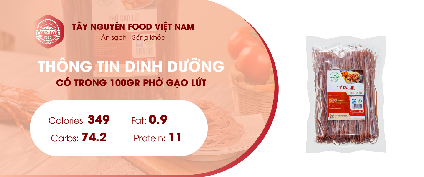 THÔNG TIN DINH DƯỠNG CÓ TRONG 100GR PHỞ GẠO LỨT NHÀ TÂY NGUYÊN FOOD - VIỆT NAM