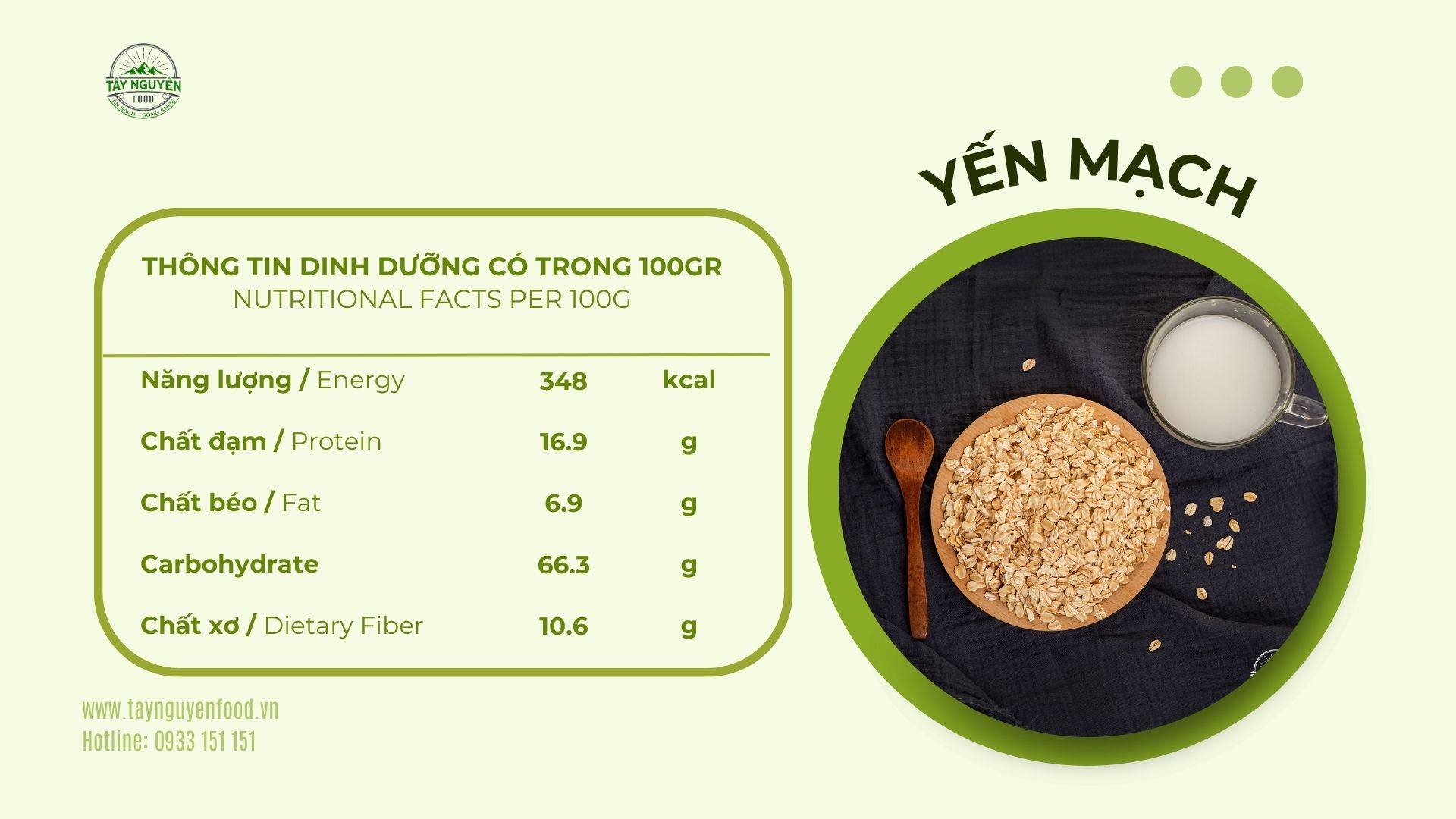 THÔNG TIN DINH DƯỠNG CÓ TRONG 100 GRAM YẾN MẠCH NHÀ TÂY NGUYÊN FOOD - VIỆT NAM